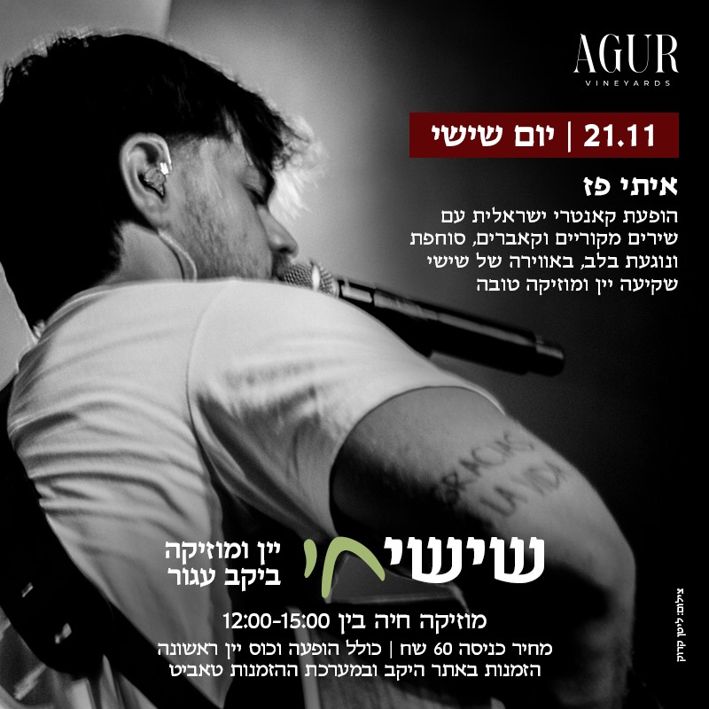 "שישי חי" – אחת לשבועיים בימי שישי ביקב עגור, לצד יינות היקב ודליקטס המקומי, מנגנים מוזיקה חיה על התפר בין עממי לגבוה, האזנה קלה ושמיטת לסתות.